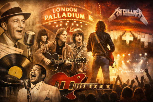 Across the pond, Petula Clark brought her polished pop to the London Palladium in 1967, performing before royalty and showcasing how British pop export stars could reach elite cultural stages. By the close of the decade, rock was sweeping arenas worldwide: in 1979, Van Halen embarked on their first world tour, laying the groundwork for stadium-filling guitar-driven rock.